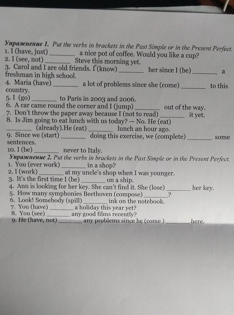 1. Have you ever worked in a shop? 2. I worked at my uncle’s shop when I was younger. 3. It’s the first time I have been on a ship. 4. Ann is looking for her key. She can’t find it. She has lost her key. 5. How many symphonies did Beethoven compose? 6. Look! Somebody has spilt ink on the notebook. 7. Have you had a holiday this year yet? 8. Have you seen any good films recently? 9. He hasn't had any problems since he camehere.