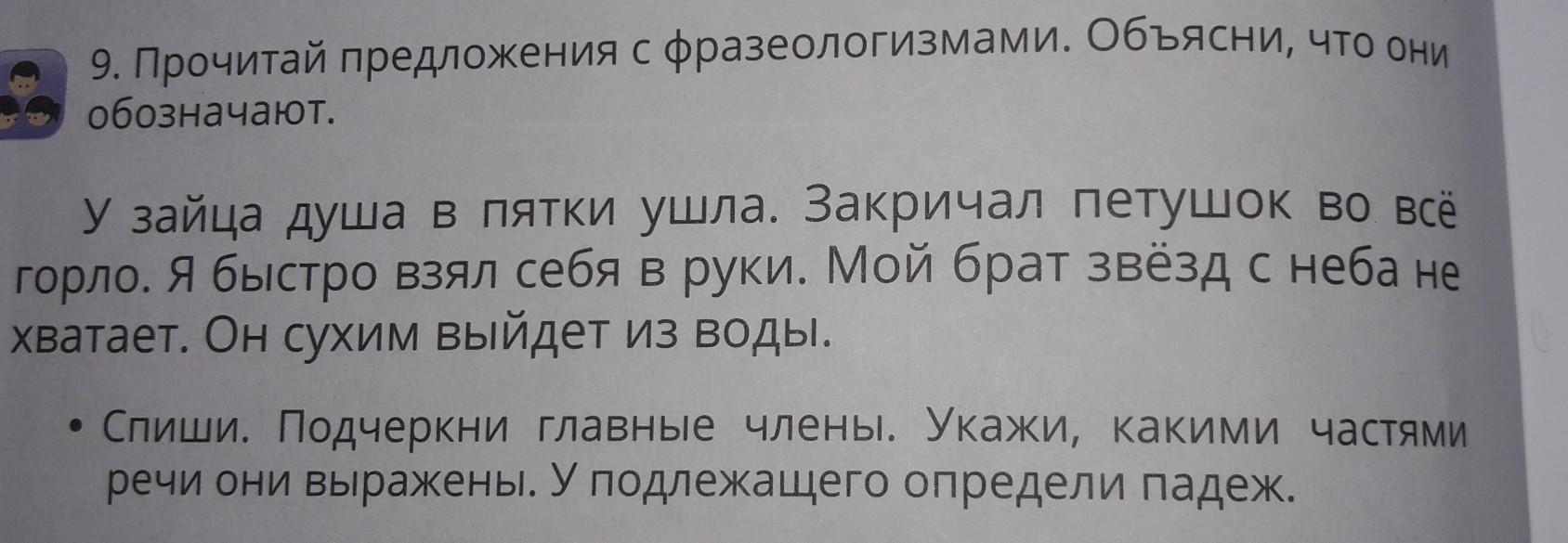 9. Прочитай предложения с фразеологизмами. Объясни, что они обозначают.