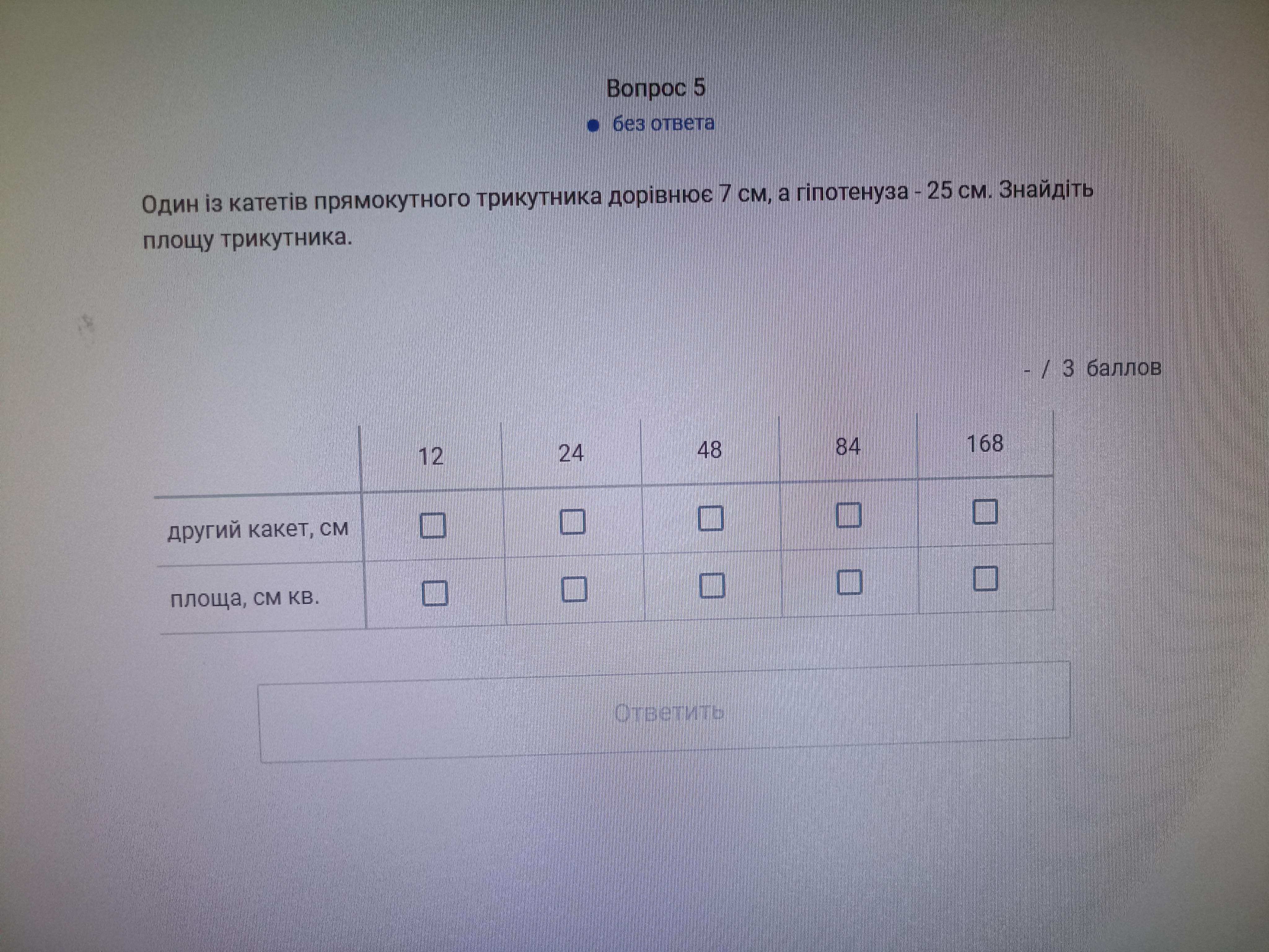 за теоремою Піфагора √25²-7²=625-49=√576=24