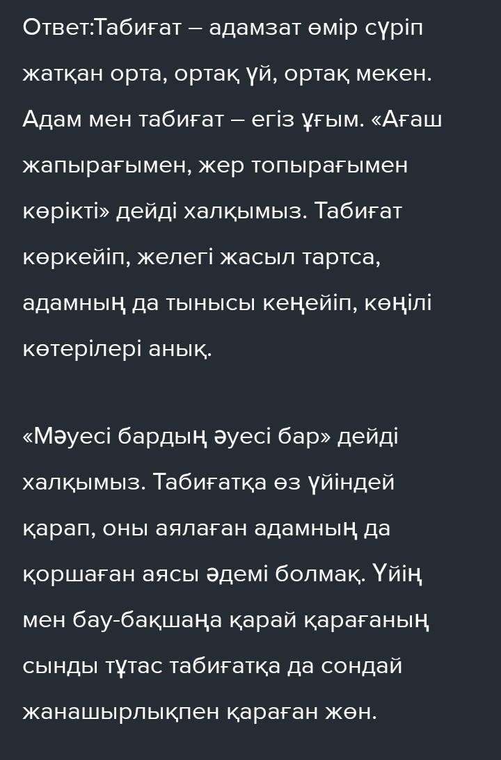 . "Табиғаттың болашақ тағдыры сендердің қолдарыңда" деген сөзін басшылыққа алып, эссе жазыңдар