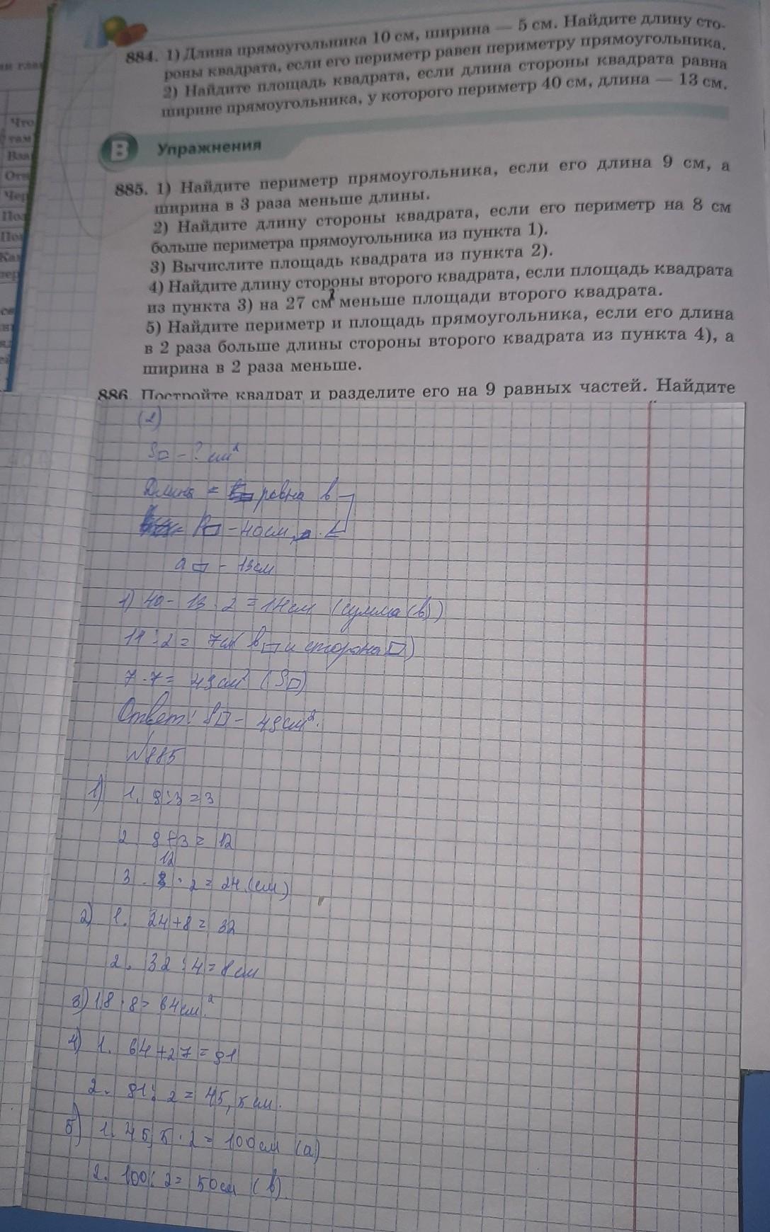 BB5, 1) Найдите периметр прямоугольника, если его длина 9 см. , ширина в 3 раза меньше длины, 2) Найдите длину стороны квадрата, если его периметр на 3 см больше периметра прямоугольника из пункта 1). 3) Вычислите площадь квадрата из пункта 2). 4) Найдите длину стороны второго квадрата, если площадь квадрата из пункта 3) на 27 см меньше площади второго квадрата. 5) Найдите периметр и площадь прямоугольника, если его длина в 2 раза больше длины стороны второго квадрата из пункта 4), а ширина в 2 раза меньше,