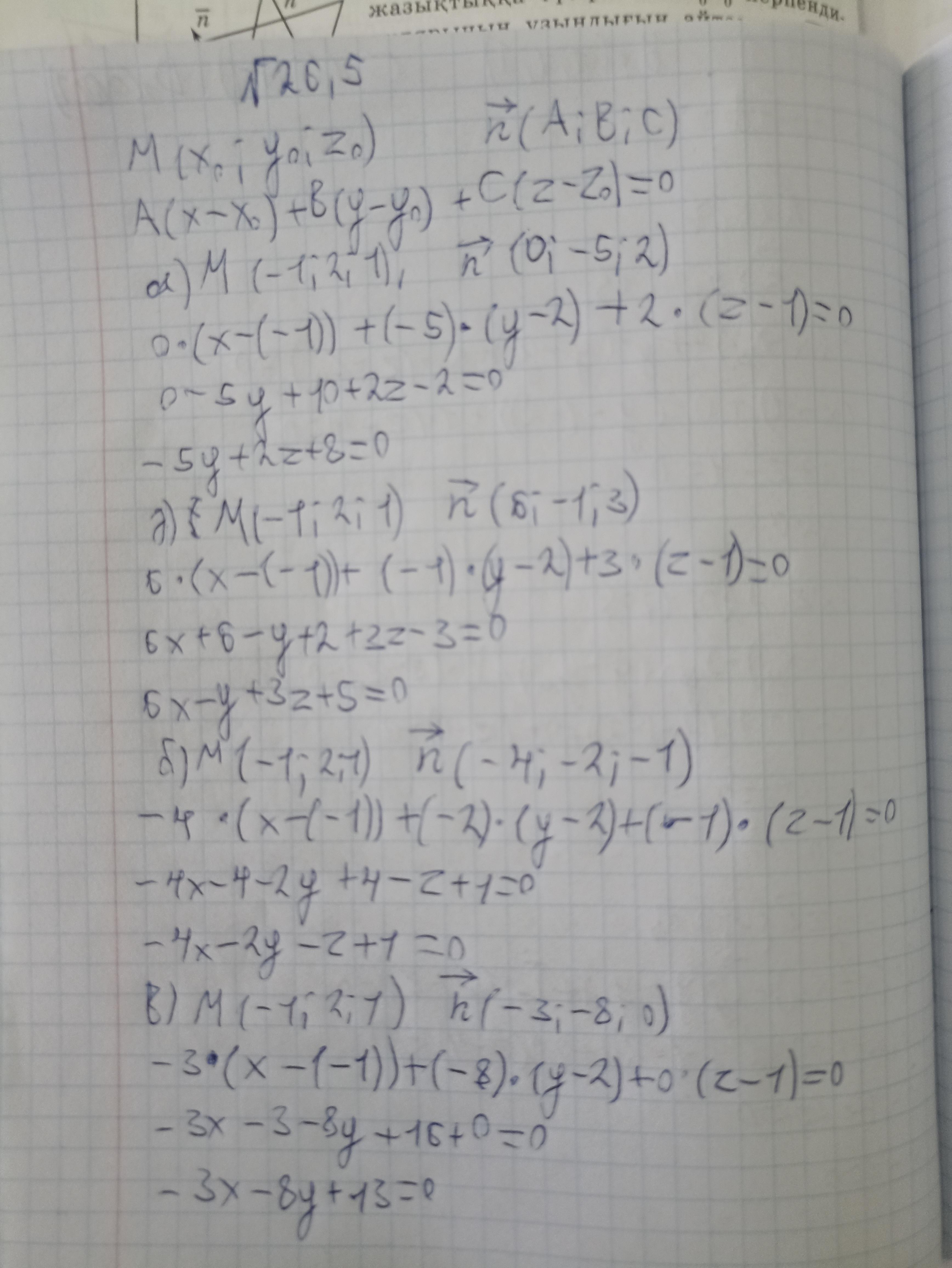 найдите уравнение плоскости проходящей через точку M(-1 ;2 ;1) ,с вектором нормали n,имеющим координаты