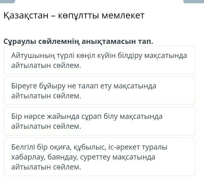 бір нарсе жайлы сұрап білу мақсатында айтылатын сөйлем