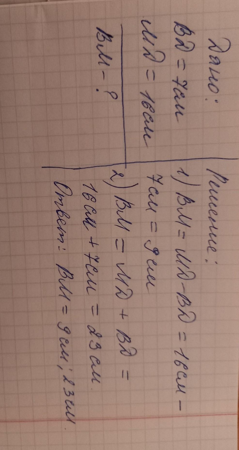 Точки В, D и М лежат на одной прямой. Известно, что ВD=7 см, МD= 16 см. Каким может быть расстояние ВМ?