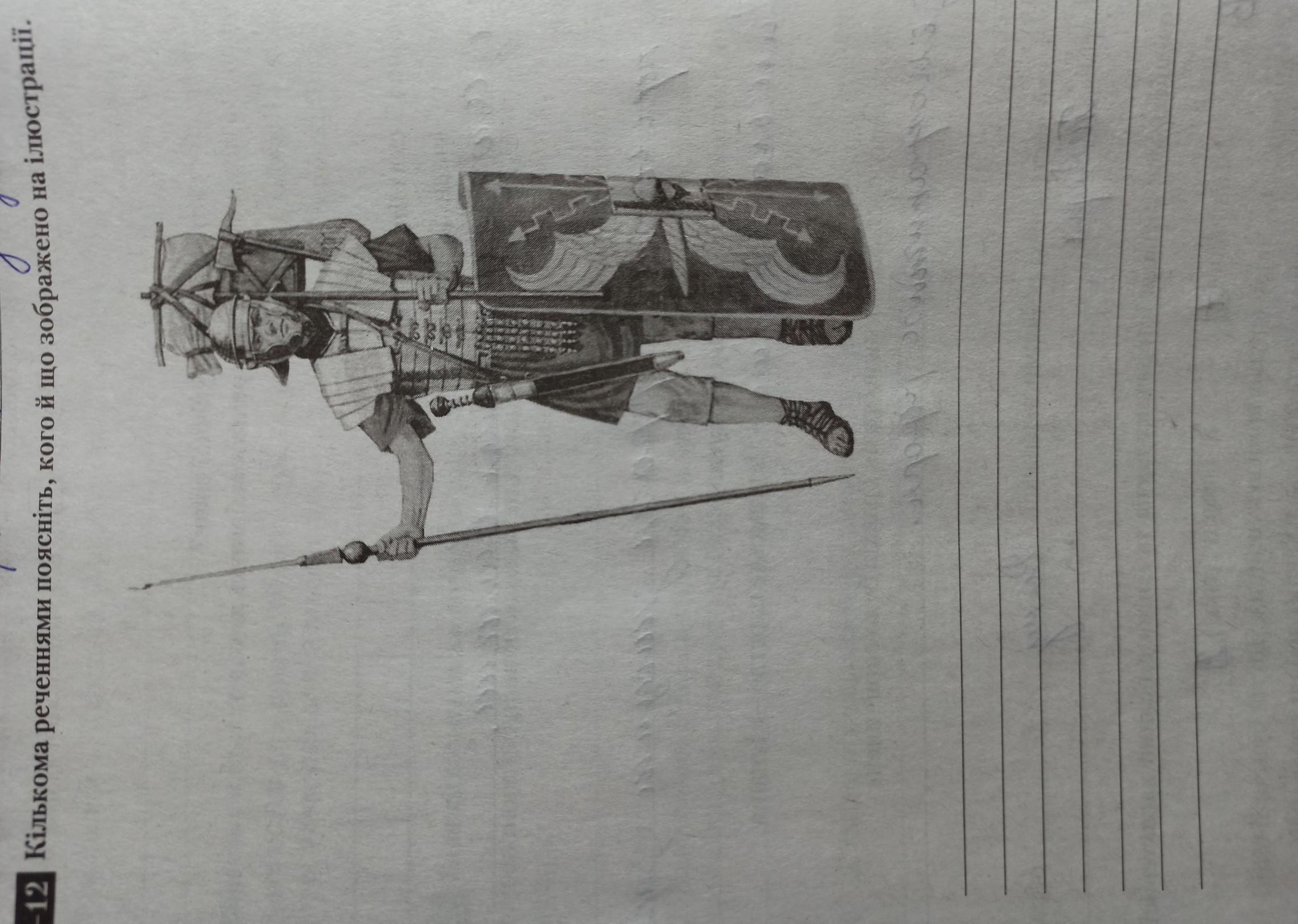 На малюнку зображений воїн. Дивлячись на форму і одяг воїна, ми можемо здогадатися, що це середні століття. Він дуже сильний, відважний. А також він завжди допомагає батькам і поважає молодших. Таких якостей дуже не вистачає сучасному поколінню. Зумери-це Підлітки, сучасна молодь,»Цифрове покоління". Так називають представників, народжених після 1996 або після 2000 року.
