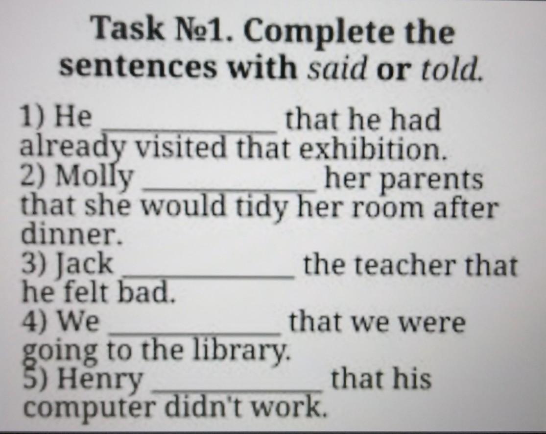 поясняю: после told должно идти указание кому мы говорим данную фразу, а после said не надо.