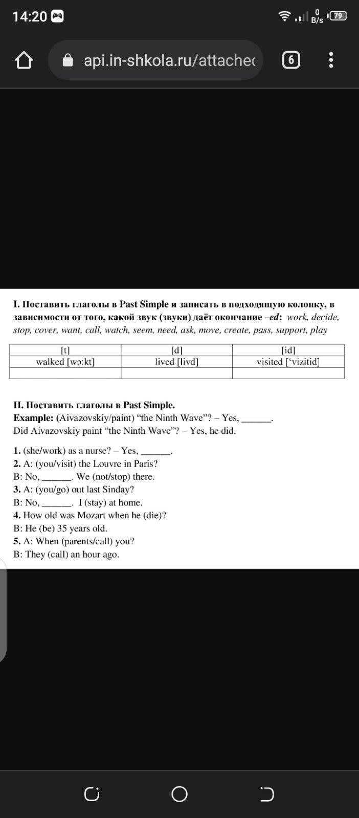 Задание 1) worked, decided, stoped, covered, wanted, called, watched, seemed, needed, asked, moved, created, passed, supported, played