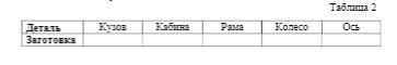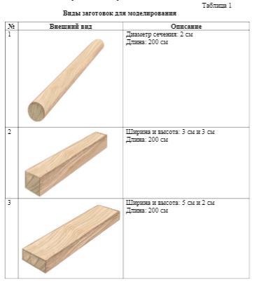 Детали деревянных машинок ученики планируют выпилить из пяти видов заготовок для моделирования. Они представлены в таблице 1