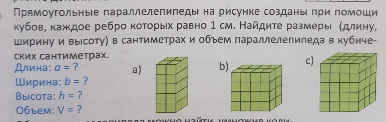 a) a=2см,b=2см,h=5см,v=20см.кв
