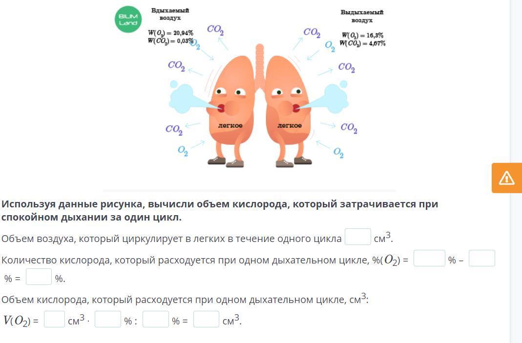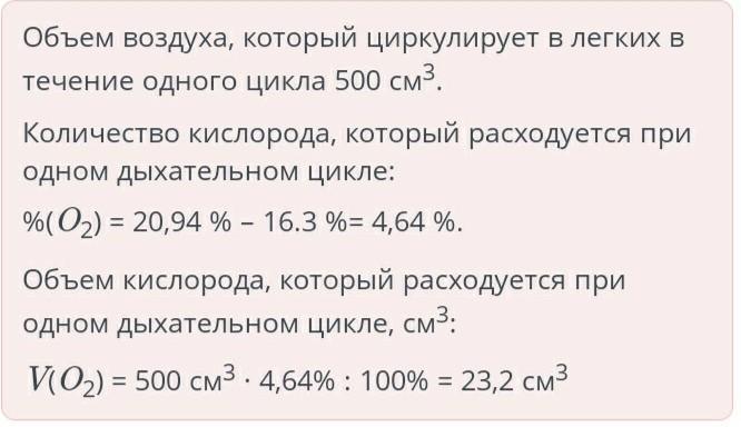 Взрослый здоровый человек при спокойном вдохе и выдохе вдыхает и выдыхает около 500 см3 воздуха.
