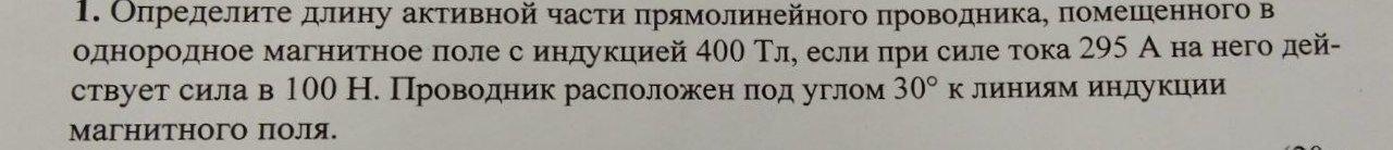 1) B=400 Тл I=295 A F=100 H α=30° L=?