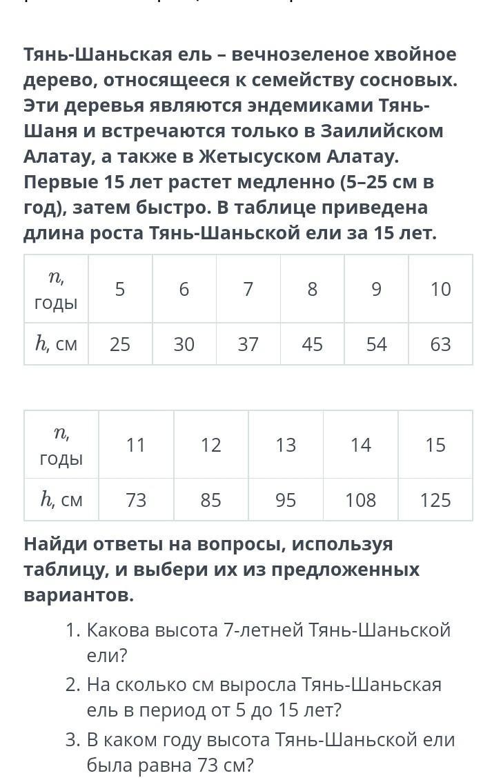 1. 37 см высота 7-летней Тянь-Шаньской ели