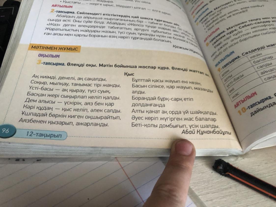 1) мәтіннің мағынасы қандай 2) бұл өлеңді кім жазған 3) бұл мәтіннің аудармасы қандай