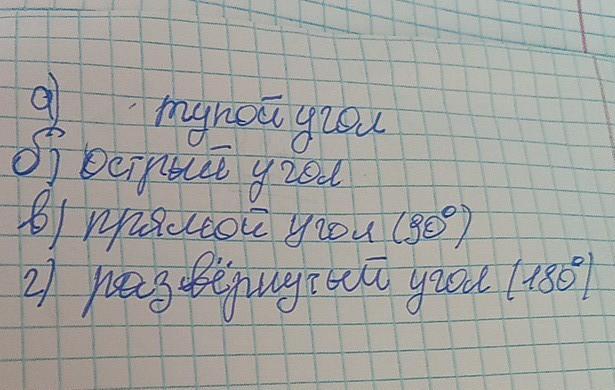 а. тупой угол б. острый угол в. прямой угол 90° развёрнутый угол