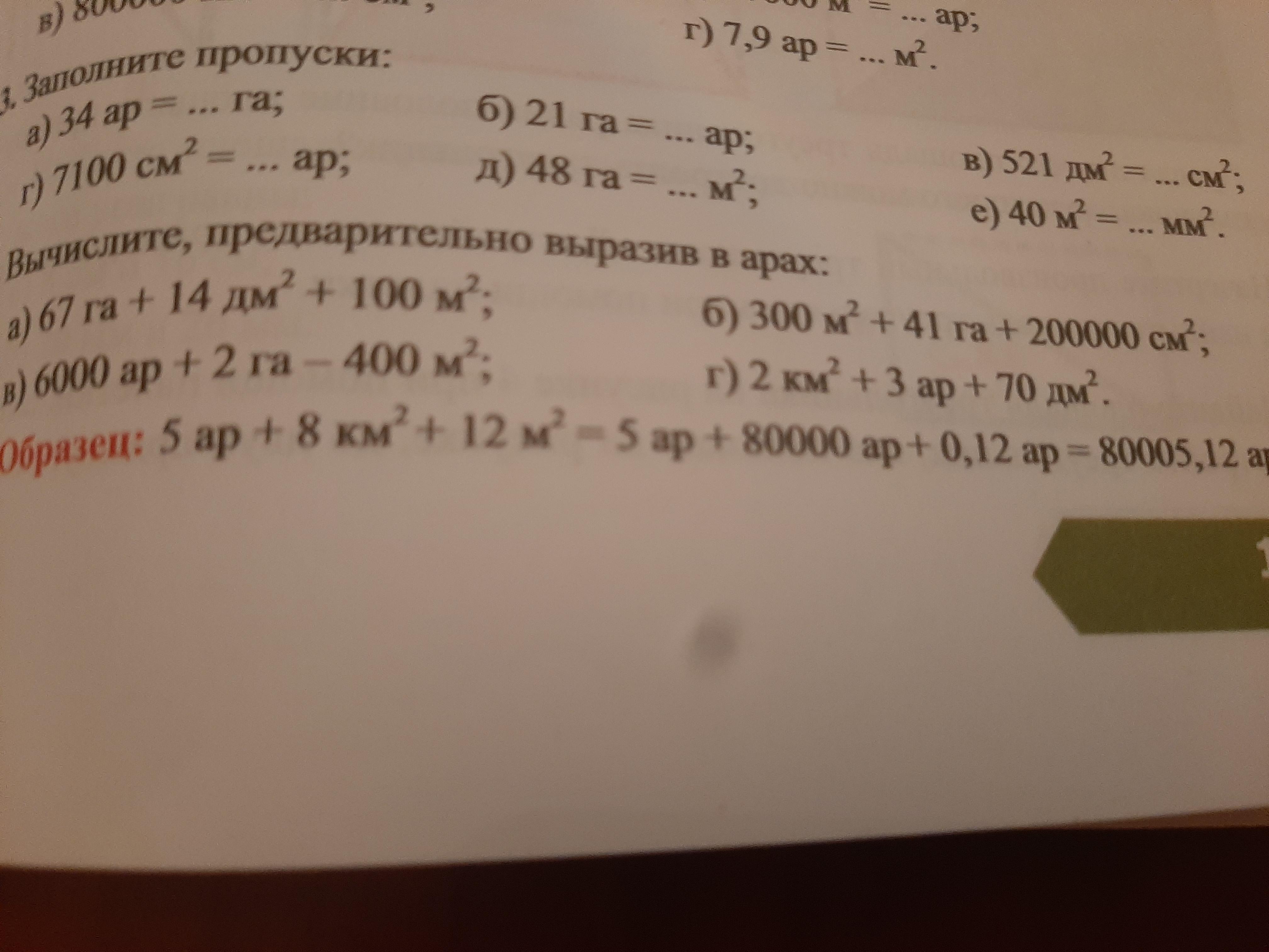 300 м² + 41 га + 200000 см² = 3 а + 4100 а + 0,2 а = 4103,2 а