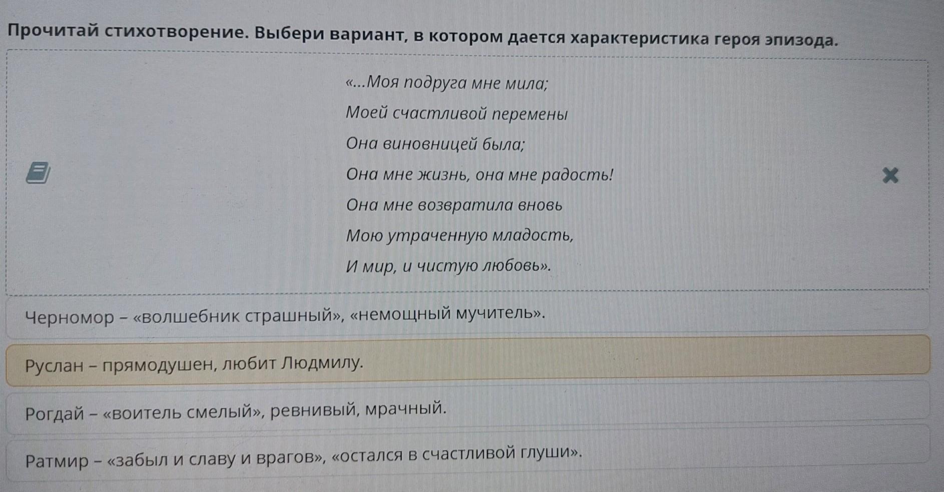 Правильный ответ : Рогдай - "воитель смелый " , ревнивый , мрачный.