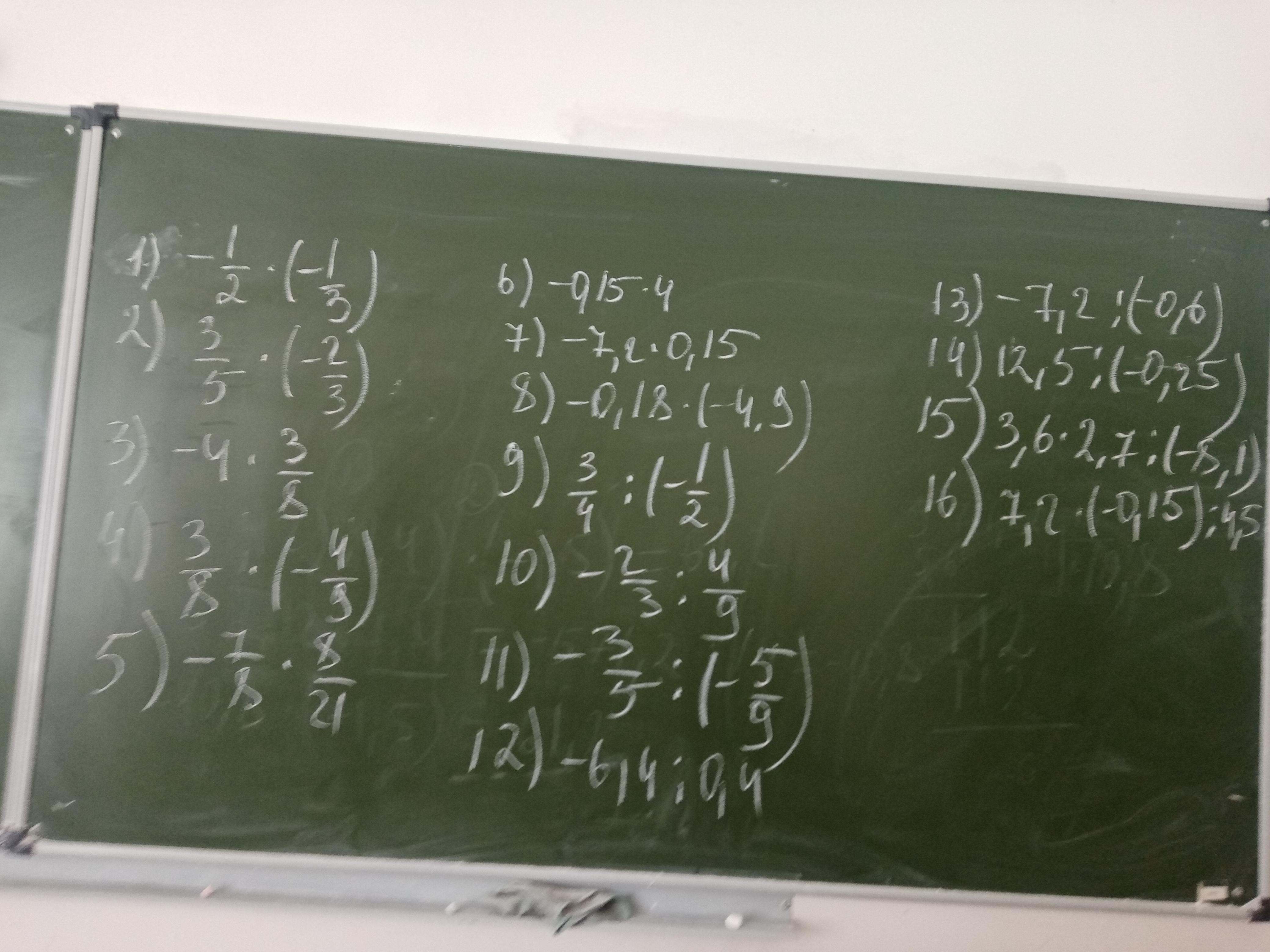 16)7,2*(-0,15):4,5=-(7,2*0,15:4,5)=-(1,08:4,5)=-(10,8:45)=-0,24(в этом примере умножила каждую дробь на 10 чтобы делитель был целым числом)