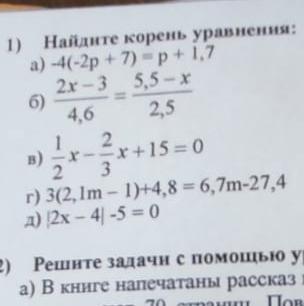 б)2,5(2x-3)=4.6(5.5-x); 5x-7.5=25.3-4.6x;9.6x=32.8; x=41/12=3 5/12