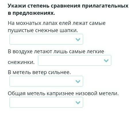 1 превосходная 2 превосходная 3 сравнительная 4 сравнительная