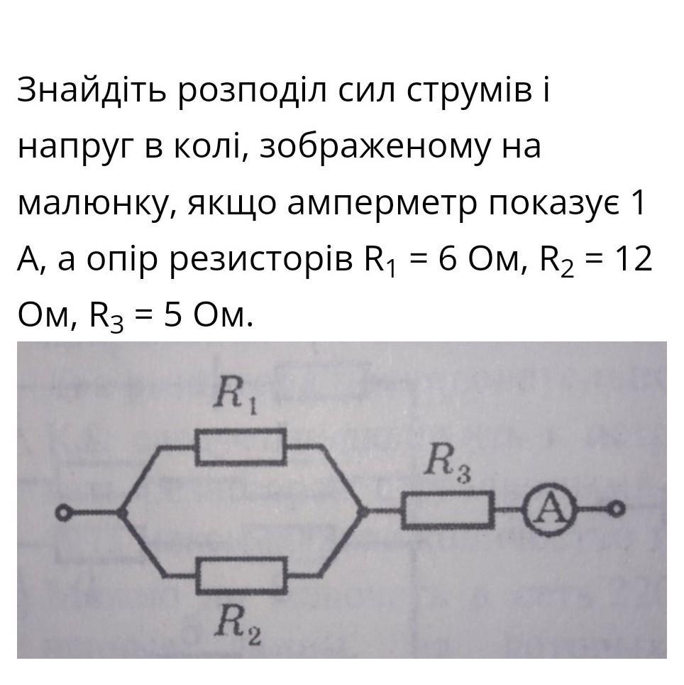ОЧЕНЬ СРОЧНО!!!!! Знайдіть розподіл сил струмів і напруг в колі, зображеному на малюнку, якщо амперметр показує 1 А, а опір резисторів R = 6 Ом, R2 = 12 Ом, R3 = 5 Ом. - R, R3 А) R,