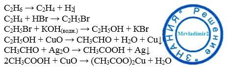 написать уравнения реакций: этан- этилен- бромэтан- этанол- уксусный альдегид- уксусная кислота- ацетат меди 2))))