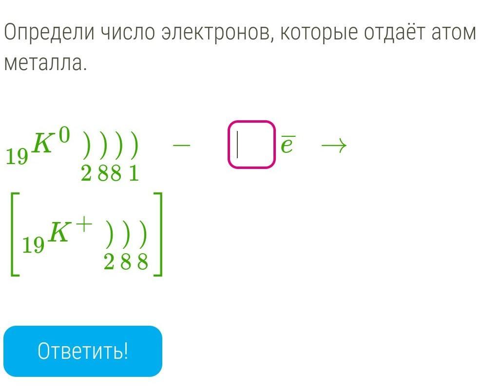 Определи число электронов, которые отдаёт атом металла. 19 КО )))) Ге -> 2 881 ок 19 ))) 288