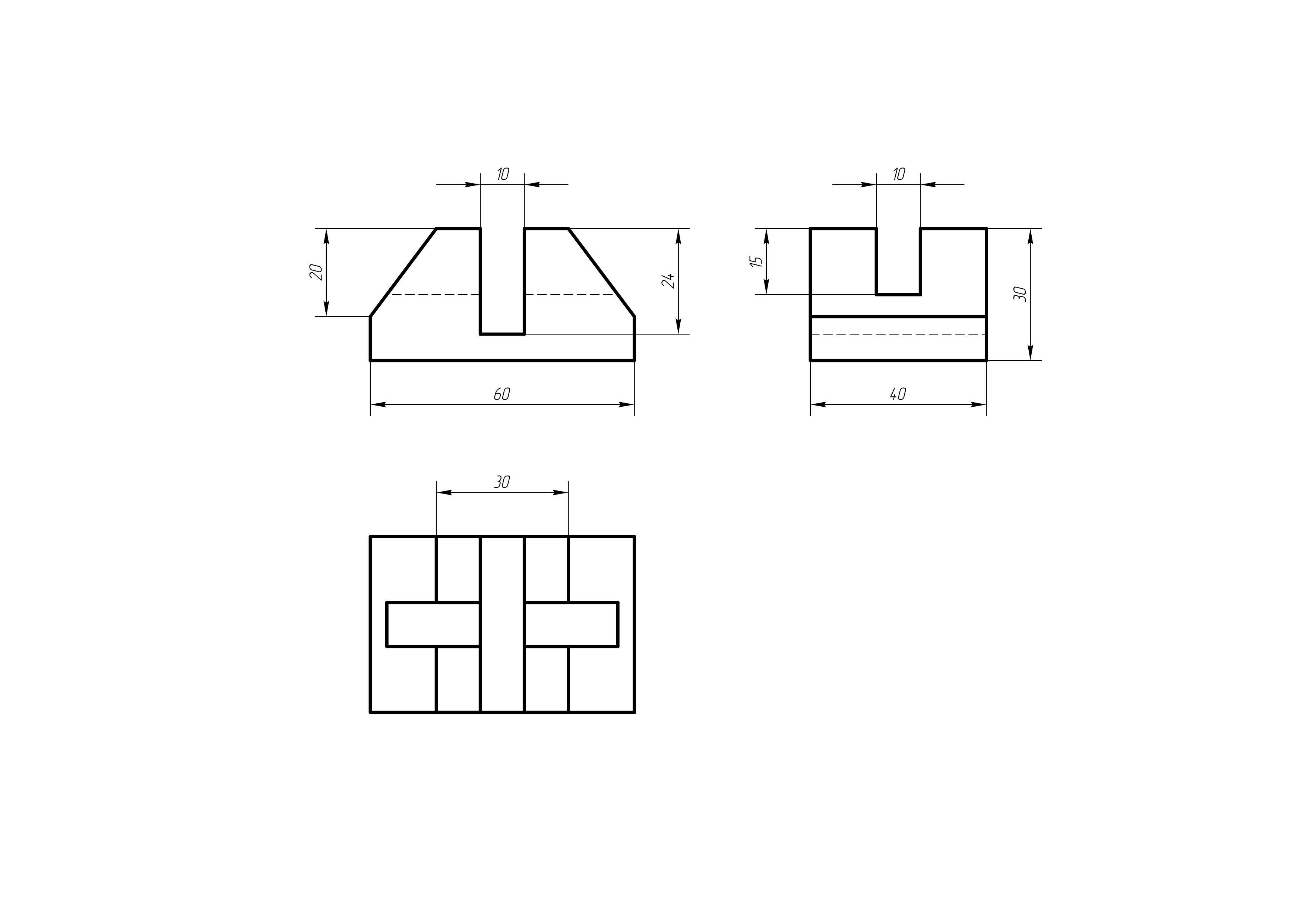Построить 3 вида модели. Главный вид взять по стрелке А. Проставить размеры