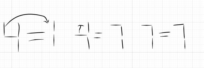 от четырёх берём одну спичку и подставляем наверху к еденице. оставшуюся спичку от 4 двигаем наверх, чтобы получить 7.
