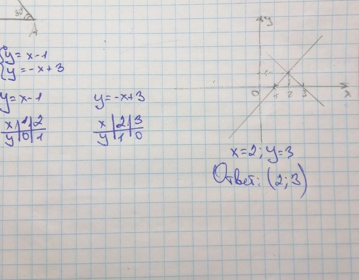 Решите с помощью графиков системы уравнения y=x-1 y=-x+3