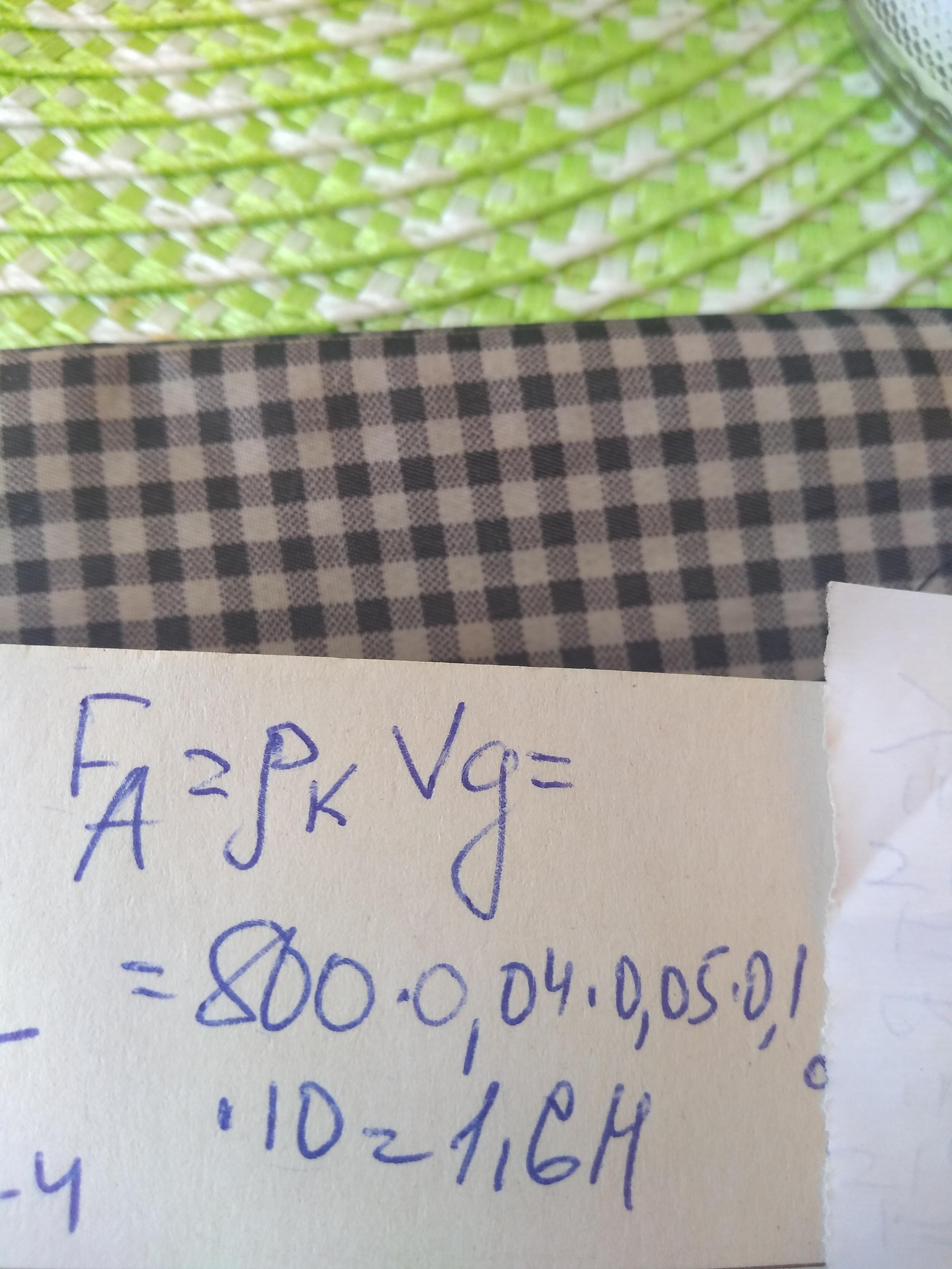 Брусок, що має форму прямокутного паралелепіпеда розмірами 4 см х 5 см х 10 см, опустили в гас. Чому дорівнюе виштовхувальна сила? Густина гасу 800 кг/м3.