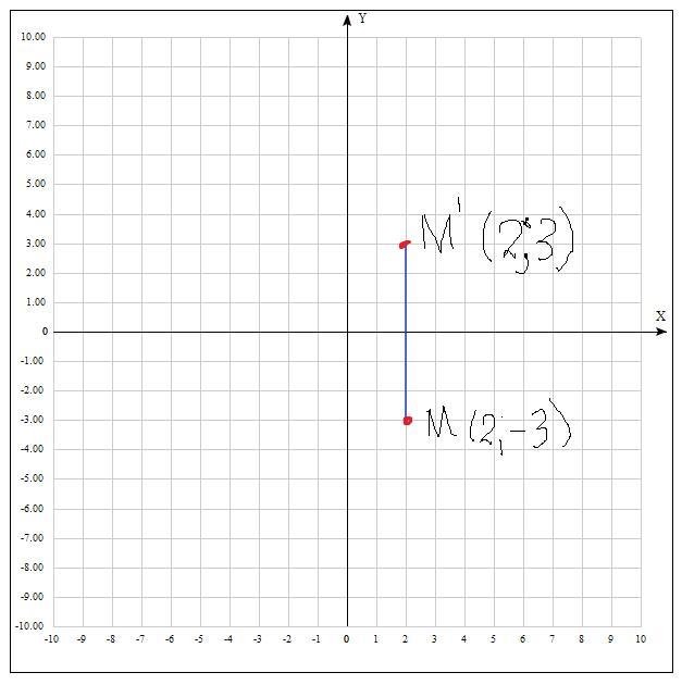 найдите координаты точек симметричных точкам M относительно : 1)оси OX; 2)оси OY; 3)начала координат, если M(2;-3)
