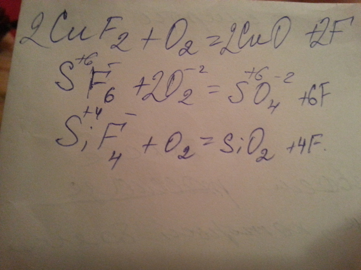 дан ряд формул некоторых элементов соединений с фтором:: CuF2, SF6 ЗА 5 SiF4. Определите валентности элементов и составьте формулы их соединений с кислородом,