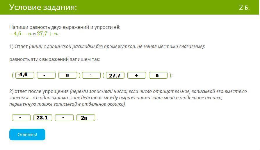 помогите с яклассом нужно написать разность двух выражений и упростить её