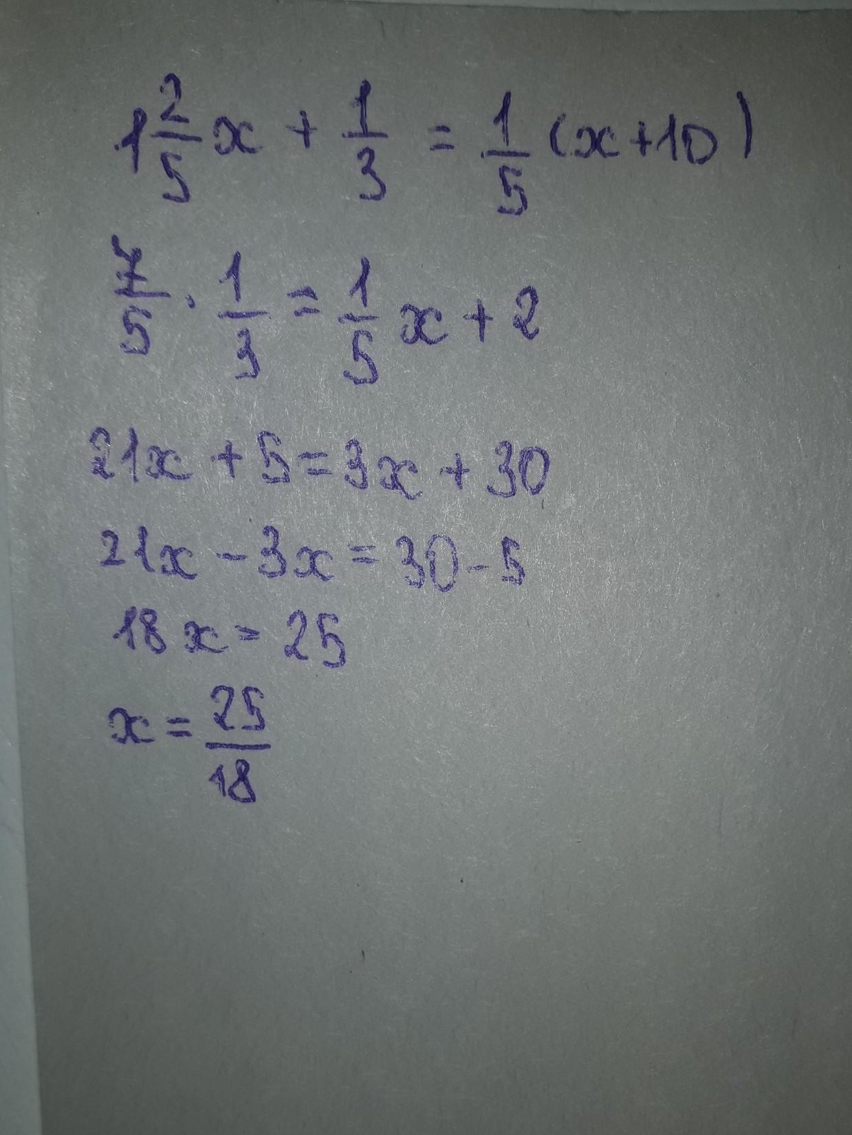 1 2/5х +1/3=1/5(х+10)