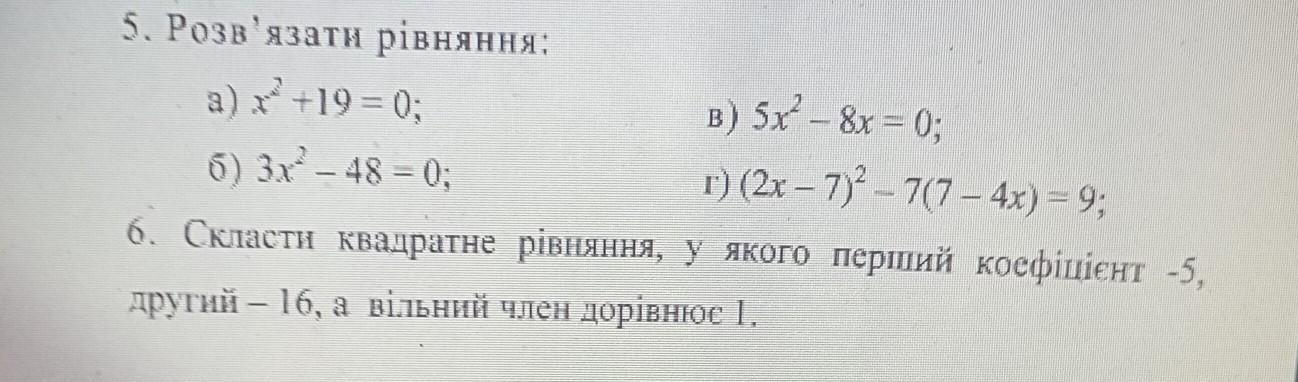 Допоможіть будь ласка, неповні квадратні рівняння, 8 клас , алгебра.. Хоча б з 5 допоможіть