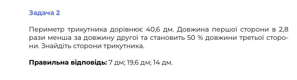 2,8х=2,8*7=19,6 дм длина первой стороны