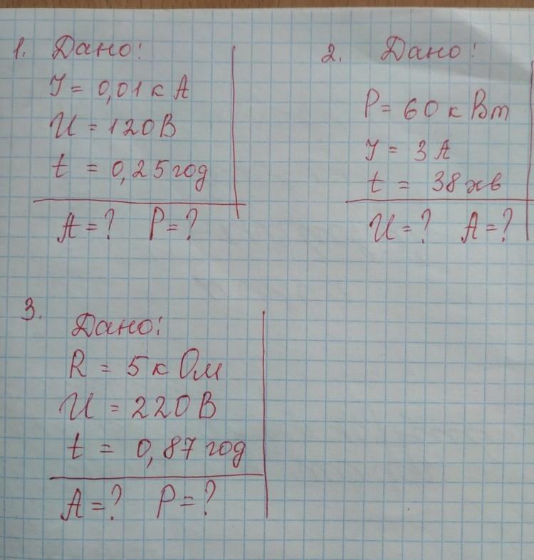 Ответ: 1,08МДж; 1,2кВт; 20кВ; 136,8МДж; 30317,76Дж; 9,68Вт