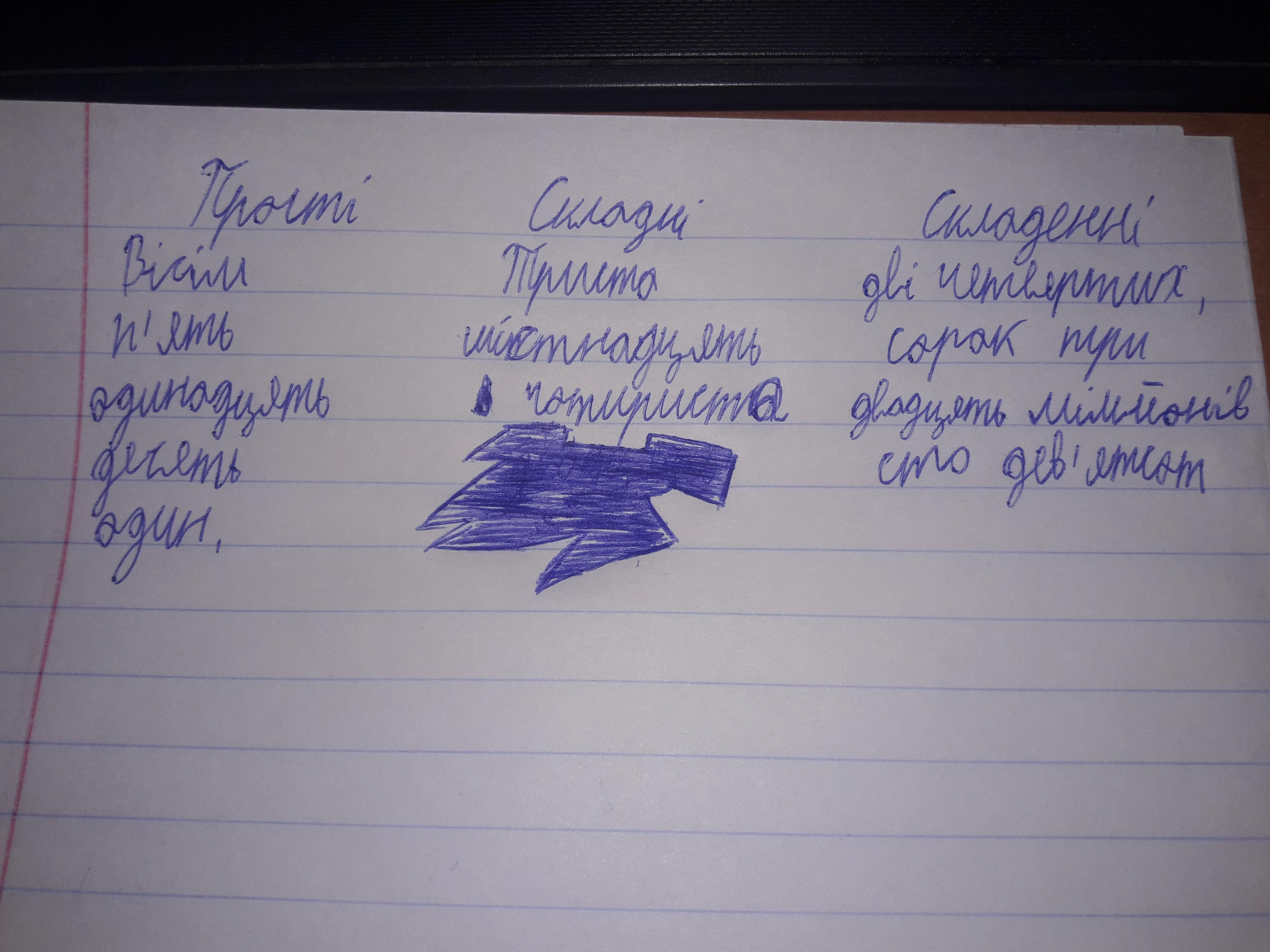 Завдання: записати числіаники у три колонки : у першу- прості, у другу-складнв, у третю- складені.