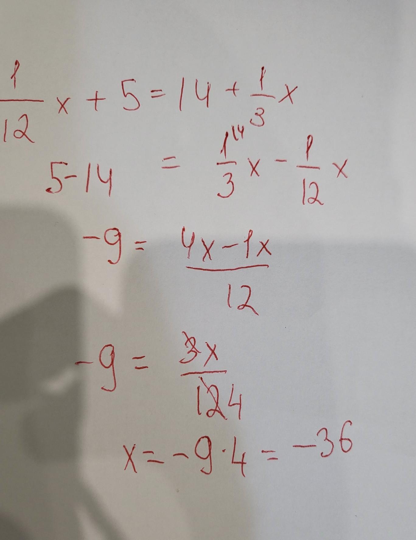 1/12х - 1/3х = 14 - 5