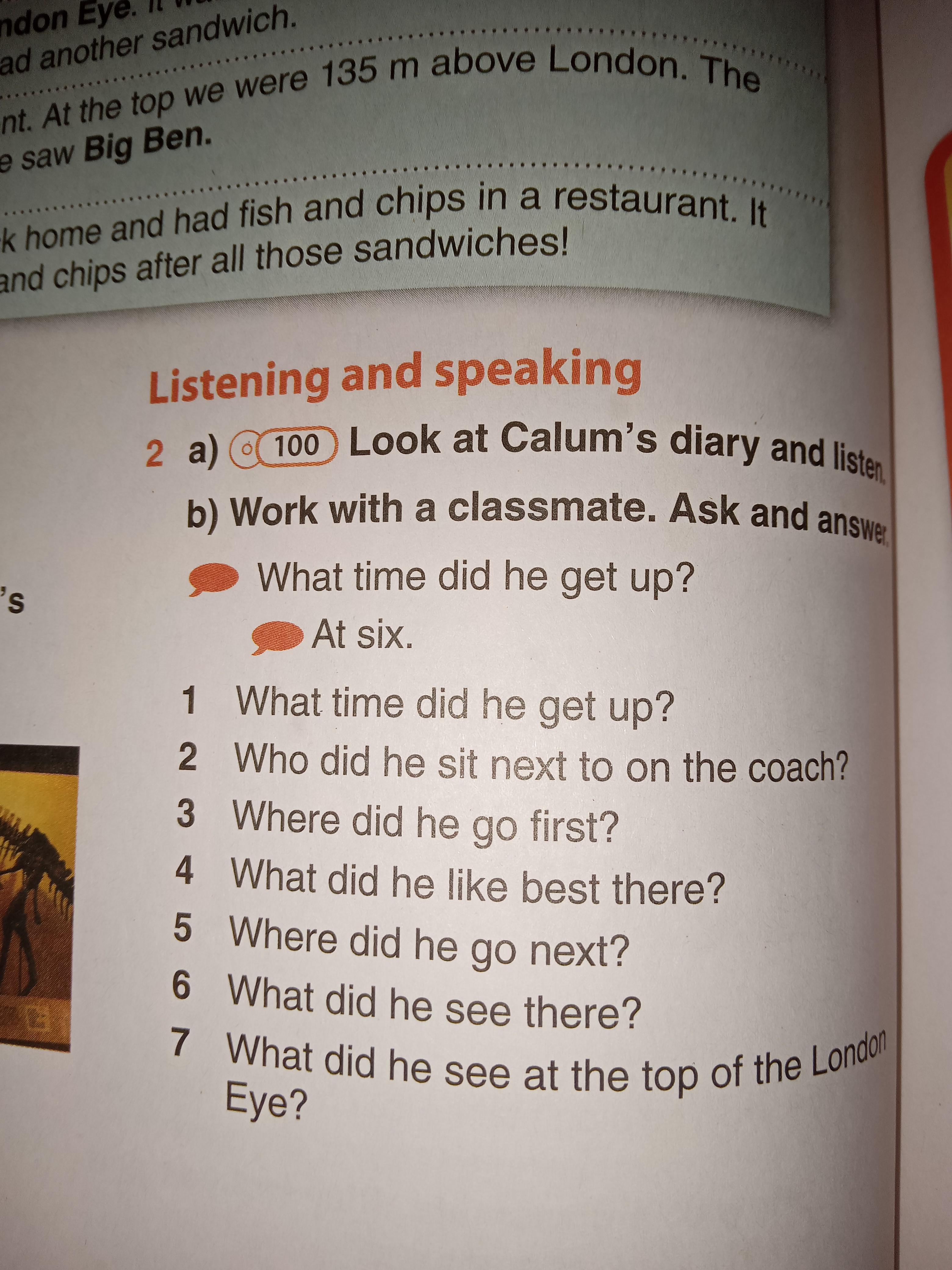 Look at Calum's diary and listen. Work with a classmate. Ask and answer.