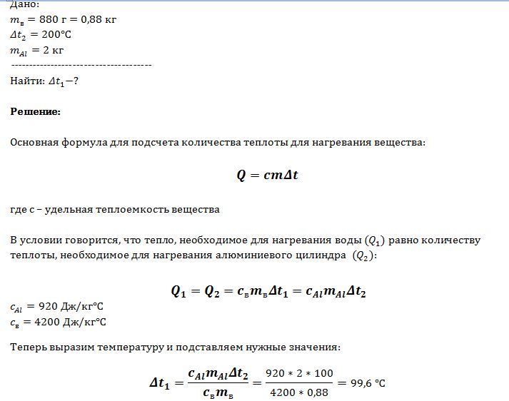 как изменится температура воды массой 880 г если ей сообщить такое же количество теплоты какое идет на нагревание алюминевого цилиндра массой 2 кг на 200 Цельсия