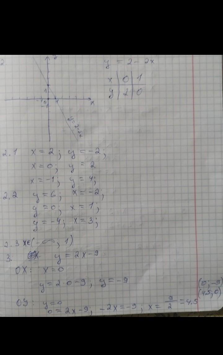 2) значение аргумента, при котором значение функции равно: 0; 2.