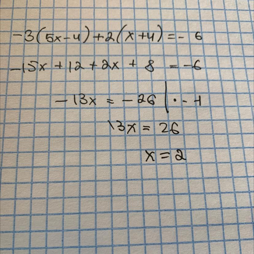 Ответ: x=2 (раскрываем скобки, приводим подобные, получаем ответ)