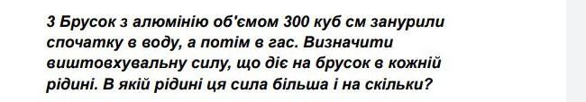 Fа(у воді)=1000кг/м3 * 10 H/кг * 0,0003 м3 = 3Н