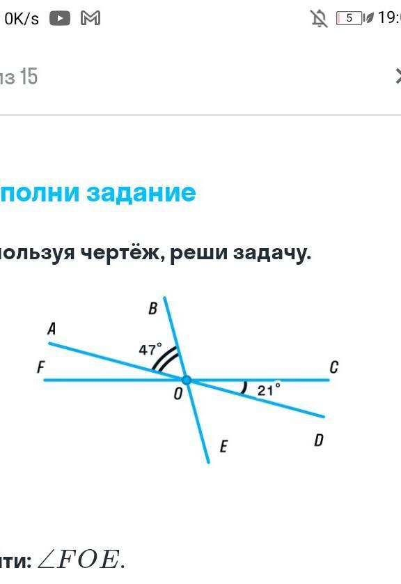 угол FOE =180-47-21=112°