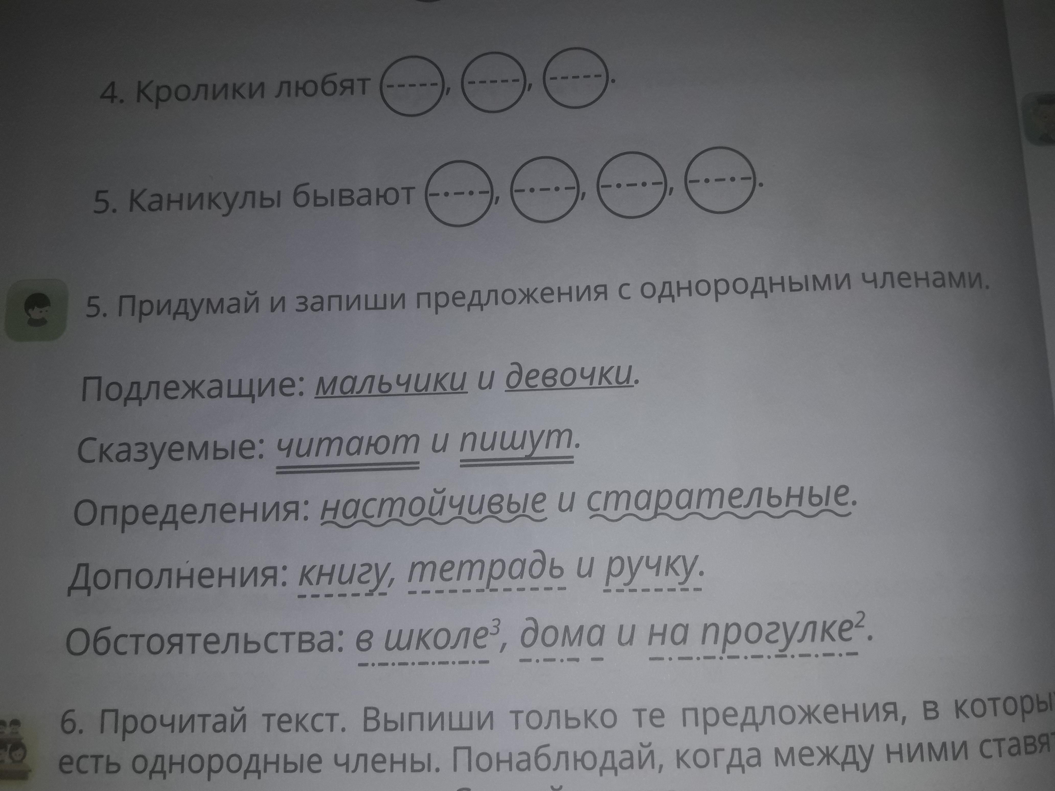 4)Я взяла с собой в школу книгу, тетрадь и ручку.