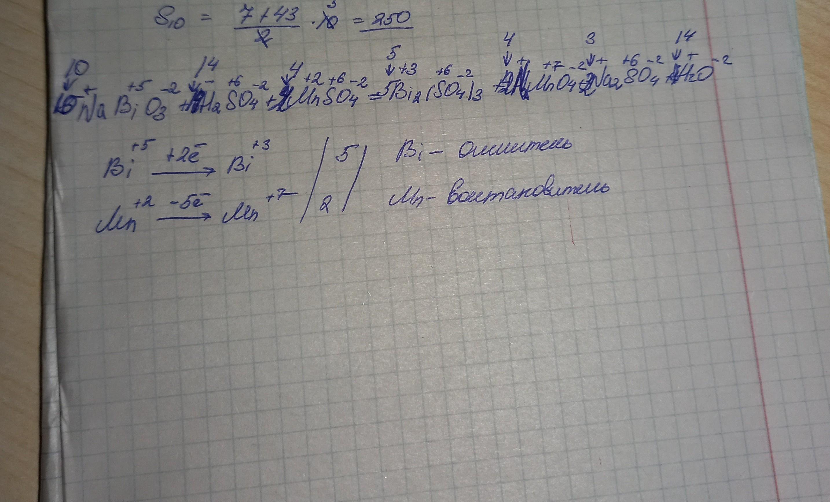 расставить коэфиценты методом электронного балнса NaBiO3 + H2SO4 + MnSO4 = Bi2(SO4)3 + HMnO4 + Na2SO4 + H2O