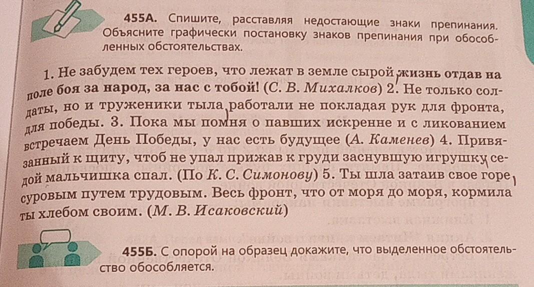 Спишите расставляя недостающие знаки препинания Объясните графически постановку знаков препинания при обособленных обстоятельствах не забудем тех героев что лежат в земле сырой жизнь недавно за поле боя за народ за нас с тобой