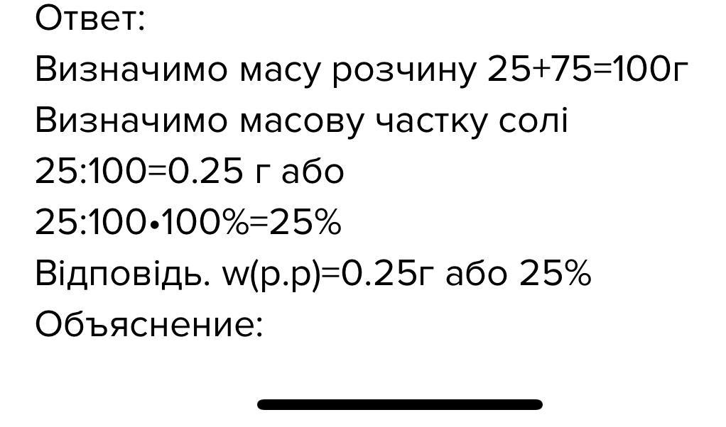 До води об'ємом 180мл додали сіль масою 25г. Обчислити масову частку солі в розчині