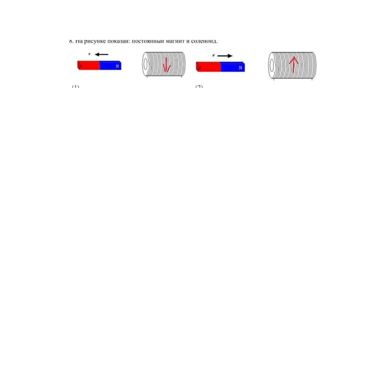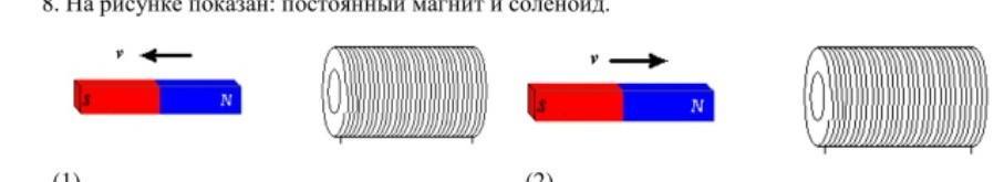 По правилу Ленца определите направление индукционного тока (укажите на рисунке). (1) Для первого рисунка (1). Для второго рисунка (2)